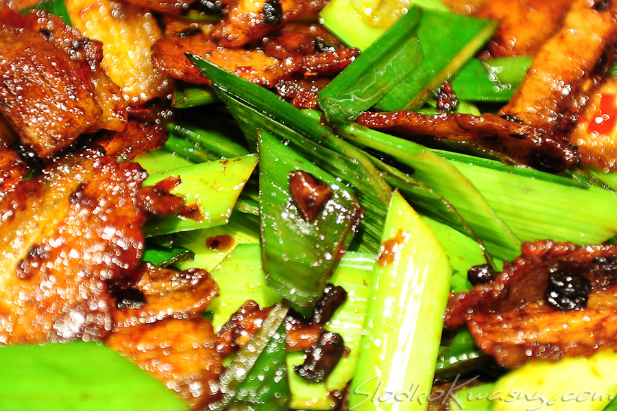 Klasyk kuchni syczuańskiej. Troche dziwaczna kombinacja krojonego w cienkie plasterki boczku, pasty z bobu i chili, fermentowanej soi i sporej porcji zielonych warzyw – kto nie probował nie wie co traci. Tę potrawę bedzie czuć w całym domu. Dobre na chłodny dzień.