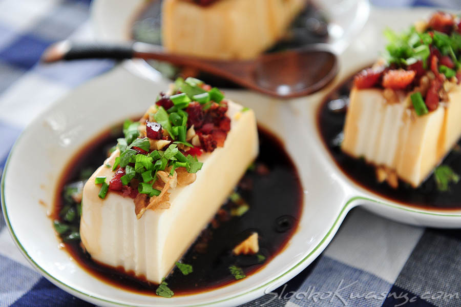 Samo tofu dla przeciętnego Europejczyka jest kompletnie bez smaku, doskonale jednak absorbuje smaki innych składników. Najlepszym tego przykładem jest ta przystawka, z pyszną posypką i oblana smakowitym sosem – sprawi, że do tofu przekona się każdy. Ta wykwintna i oryginalna przystawka zrobi wrażenie na Twoich gościach.