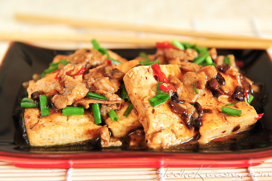 Tofu przyrządzone po domowemu przy użyciu najpopularniejszych chińskich przypraw: sosu sojowego, wina shaoxing, szczypiorku, czosnku, chili i fermentowanej czarnej soi, zagęszczone skrobią kukurydzianą. I w dodatku z woka. Esencja kuchni chińskiej.