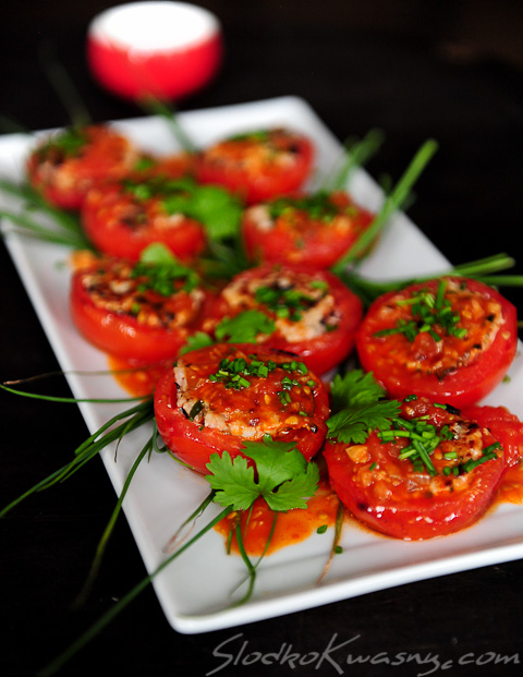 Smakołyk (Cà chua nhồi thịt), który bardziej w smaku przypomina europejskie dania, a wyglądem elegancką kuchnie fusion. Pochodzi jednak z Wietnamu i jest tam bardzo popularna. Świetnie nadaje się na podanie gościom, szczególnie jeżeli przygotujecie sobie pomidory i nadzienie wcześniej – wystarczy potem je tylko wrzucić na patelnie i po kilku minutach gorące podać gościom. Dodatkowym atutem (oprócz oczywiście wyśmienitego smaku) są niewyszukane składniki, które prawdopodobnie znajdują się w Waszej kuchni.