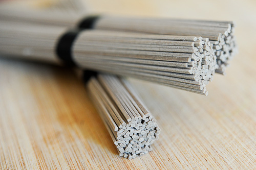 SOBA: makaron zrobiony z kaszy gryczanej, nitki są cienkie i brązowe. Odmianą tego makaronu jest zielonakwy ‘green tea soba’ i jak sama nazwa wskazuje jest zrobiony z dodatkiem sproszkowanej zielonej herbaty. Używany jest głównie na północy Japonii, często jedzony na zimno z pr. Znajdziesz go w tanich fast-foodach ale także w wyśmienitych restauracjach.